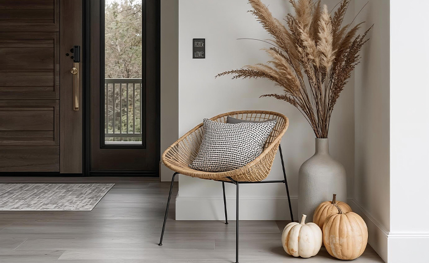 Crea un pequeño espacio con tonos cálidos y detalles en los colores del otoño. Agrega luces suaves y algunos accesorios divertidos para que todos quieran pasar y tomarse una foto. Es una manera sencilla de capturar la esencia del día.