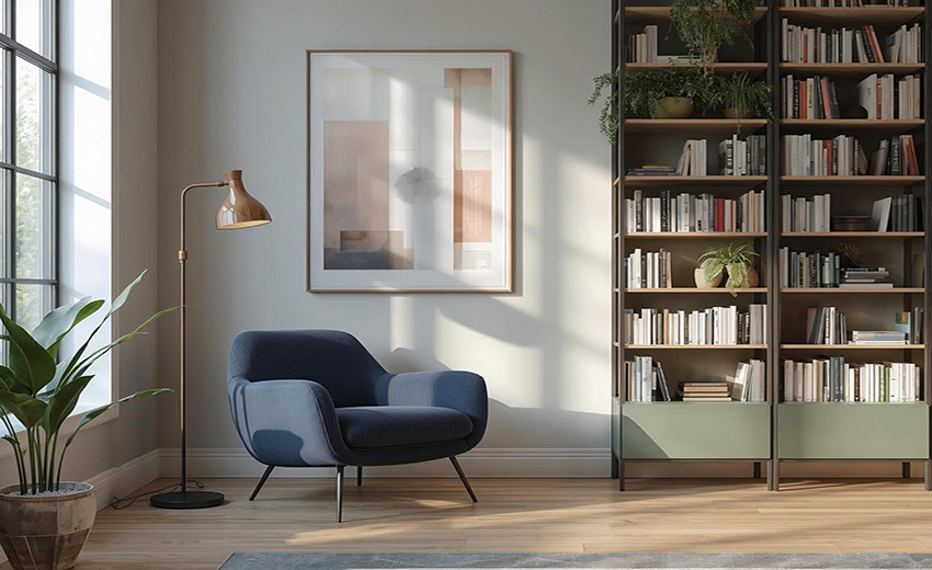 Pon estantes para tener los libros en las paredes. Recuerda que si tienes niños debes tener los libros a una altura considera.